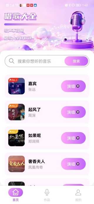 1、在首页中选择你喜欢的音乐,点击后面的演唱按钮進入;