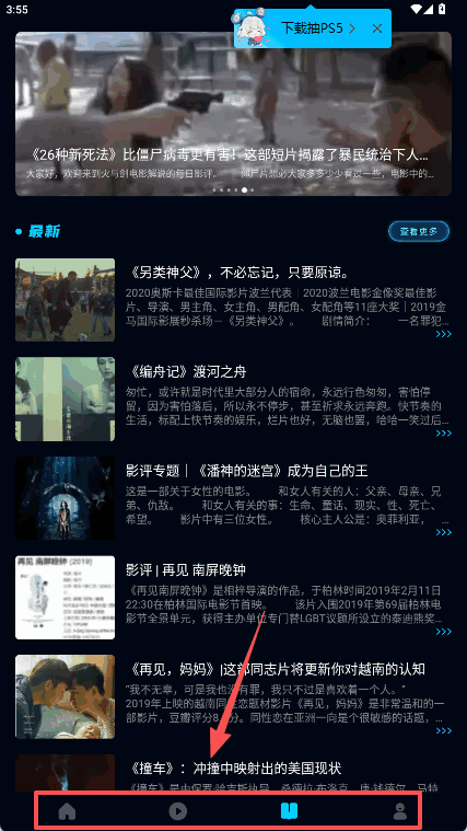 4、打开主页看最新板块,点感兴趣的電影标题,就能直接播放观看。