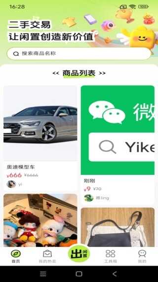 2、首页提(ti)供(gong)海量闲置商品(pin),支持关键词搜(sou)索(suo)与分类筛选。