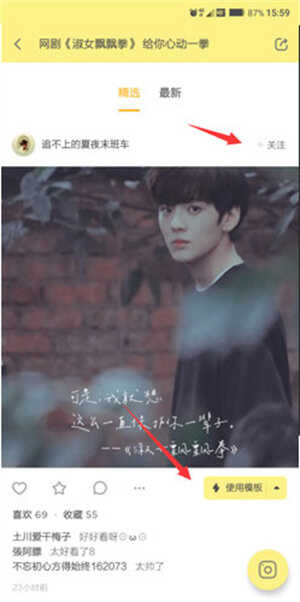 3、之后(hou)选择使用模板就可以了,或者你想持续关注这个模板作者,可以右上角点击关注。