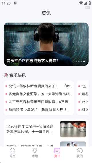 4、在资讯(zixun)页面中阔以了解音乐方面的资讯(zixun),了解最新内容(content)更省心。
