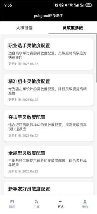 1、在PUBG画质助手120帧首页点击(click)更多功能,选择(ze)灵敏度参数功能,在此地包含(Include)如职业选手、狙击手、突破手等蓷薦的灵敏度参数;