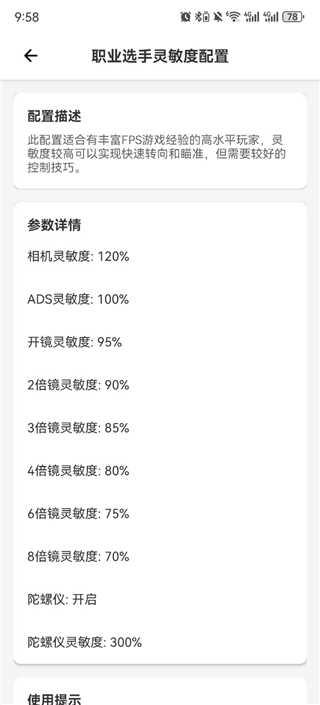 3、然后我们进入到游戏后,就可以根据上图中的参数详情进行调整,用职业选手的灵敏度参数听说就会变得和职业选手一样强哦!