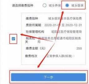 3、点击后即(ji)可(ke)查看到个人的社保缴费信息,在此选择(ze)城乡医保并点击“下一步”进行缴费即(ji)可(ke)。
