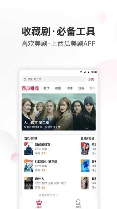 拥有排行榜功能,可以在排行榜中看到各种精选美剧推荐;