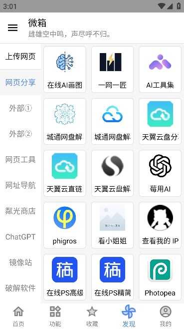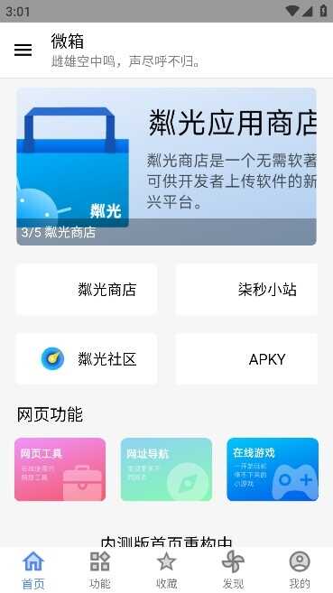 微箱(微箱app最新版本):你的看法?内置超多小工具任意选择使用操作,点击即可轻松上手即可,涵盖生活的方方面面,可以轻松操作和启用,满足大家的需求。去除多余元素,只留下核心推荐功能,还你一个干净的手机。九大分类,推荐功能加粗显示,微箱app 1.30方便查找和使用。所有工具都是免费的,喜欢可以点击看看哦。