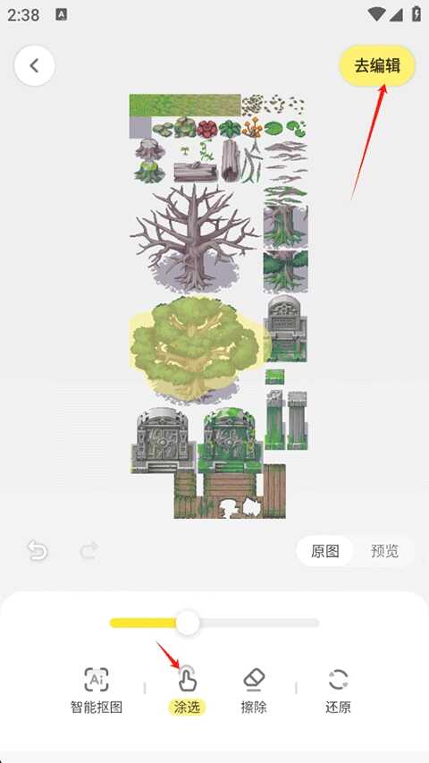3、点击下方涂选,涂抹需要扣除的部分,完成后点击右上角的去编辑;