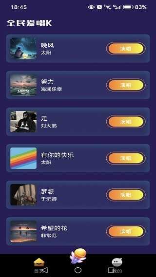 1、安装进入首页,展示了丰富的演唱曲目,自由选择。