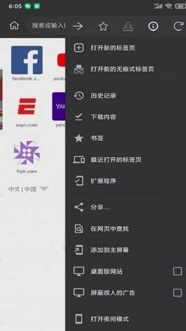 2、支撑显现底部地址栏、办理主页网站(长按移动或删除图块,单击[+]添加新网站)
