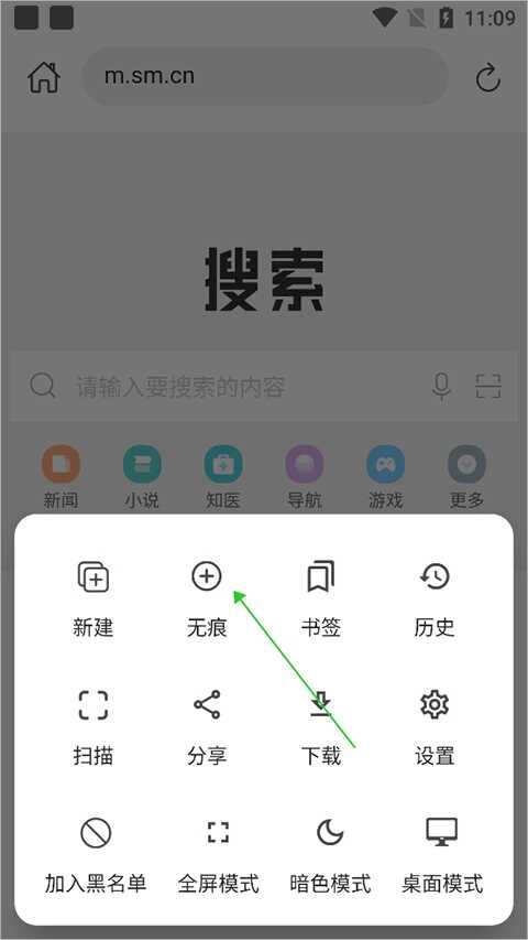 在弹出的面板中点击【无痕】就可直接新建无痕浏览页面了