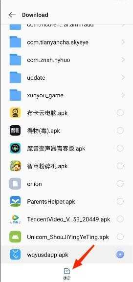 4、选择唯趣应用商店apk确定,一般都是在download文件夹中。