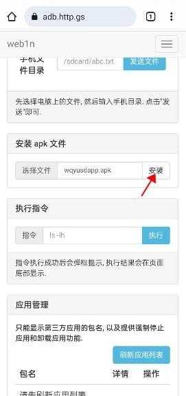 3、连接成功之后,往下划找到安装apk文件,选择文件。