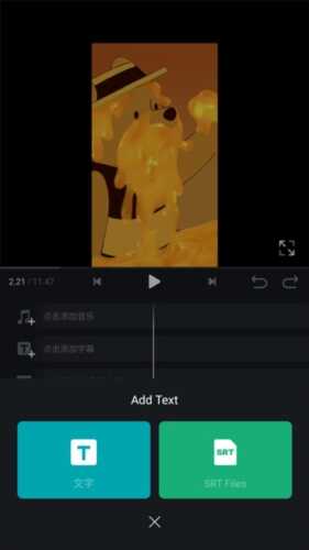 4、点击【字幕】,可以选择字幕样式并输入内容,点击【√】符号即可,还可以设置音乐及其他特效;