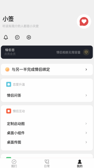 3、这里可以与另一半情侣绑定,还能定制启动图。