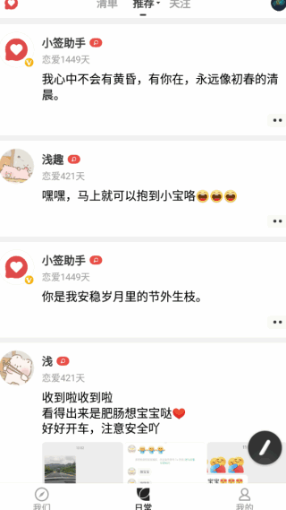 2、通过图片和文字记录每一天的恩爱时光,有助于情侣间共同回忆,能将爱情点滴写成故事,进一步加深彼此的情感联系。