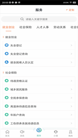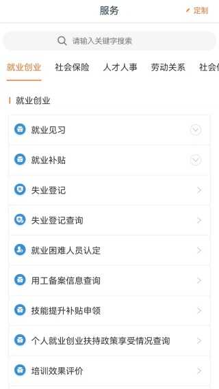 2、在服务板块,提供就业创业、社会保险、人才人事等服务。