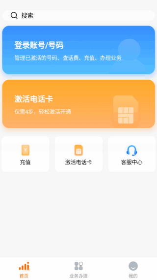 3、进入首页,可以激活开通电话卡,办理相关业务。