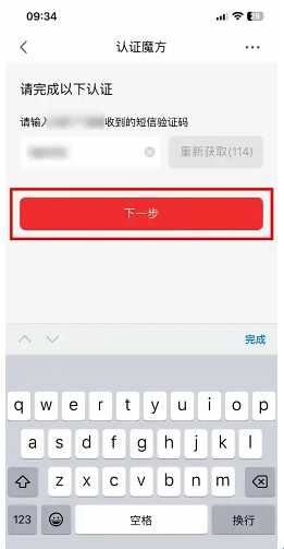 4、在打开的页面中,输入“手机验证码”,再点(dian)击“下一步”。