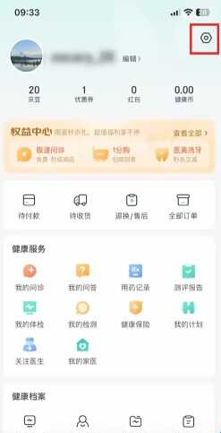 1、在手机上打开京东健康,点(dian)击个人中心的“设置”。