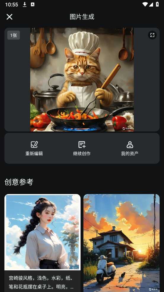 2、AI图片:支持文生图和图生图,基于描述和参考图,可以生成多种尺寸、多种风格的创意图片,更支持将图片一键生成视频。