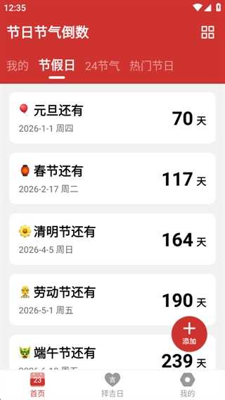 2、提供节假日倒数功能,直观的查看距离放假的天数;