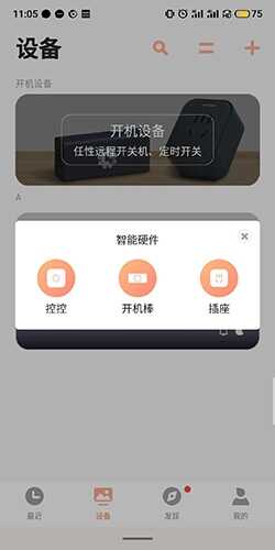 5、添加智能硬件可以选择(xuanze)控控、开机棒以及插座。