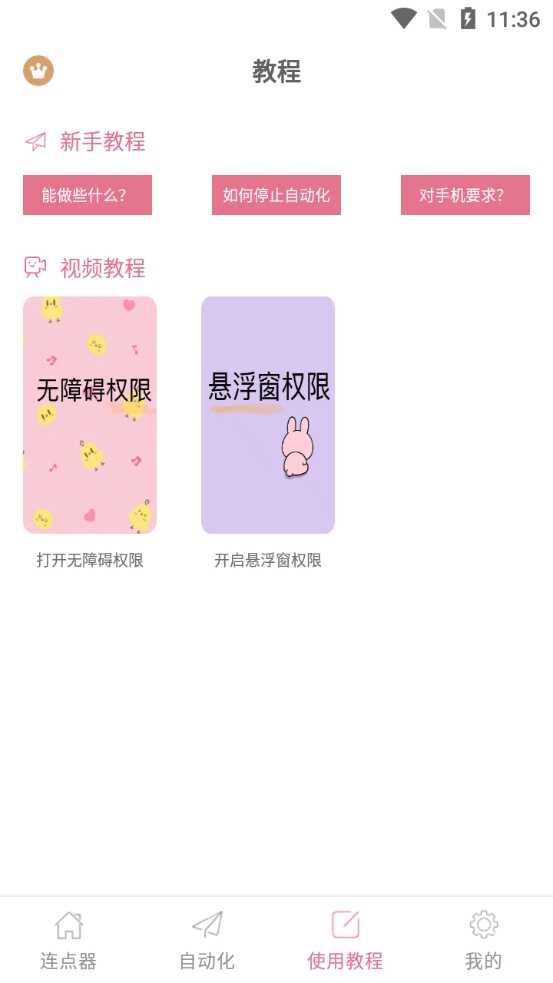 1、自动连点:提供(tigong)多种连点模式和设置選項,实现手机屏幕的自动连点操作。