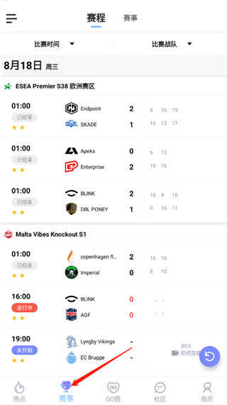 1、打开在本站下載的5EPlay,点击赛事,玩家可以官看各种(zhong)时间段的赛事