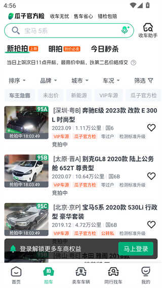 3、可以在首页下方“拍车”中参与车辆竞拍。