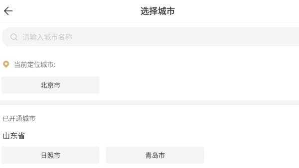 3、使用(yong)前需(xu)要(yao)先选择城市,直(zhi)接(jie)搜索或者定位(wei)都可以。