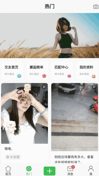 2、进入热门(popular)板块,则能进入交友首页、匹配中心、邂逅(xiehou)榜单等。
