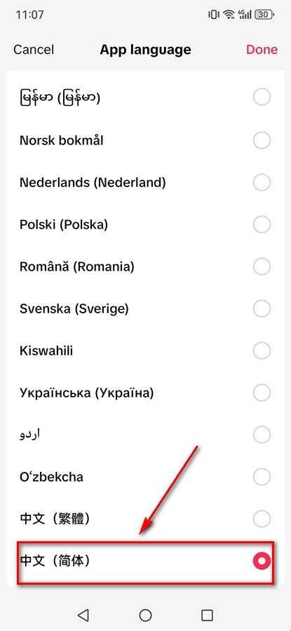 4、拉到最下面选择【中文】,再点击【Done】