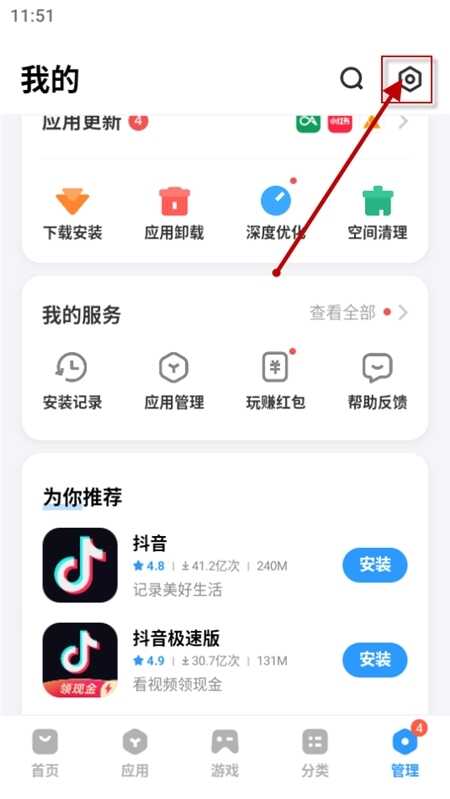 1、点击Vivo应用商店右下角“管理”按钮,进入个(ge)人管理界(jie)面。