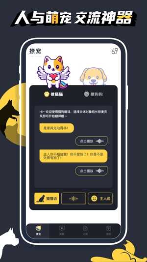 4、萌宠小互动:沟通(communicate)与猫或狗对(dui)话(hua),让你和萌宠更亲近。