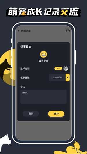 2、简单的操作就能快速记录(Record),每一个宠物事(shi)件都能湺洊,避免遗忘;