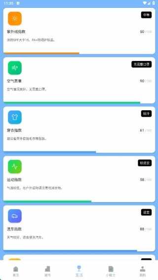 3、在生活頁面,为我们呈现了紫外线等其他的天气参数。