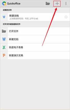 1、打(da)开quickoffice软件后,点击右上角的+。