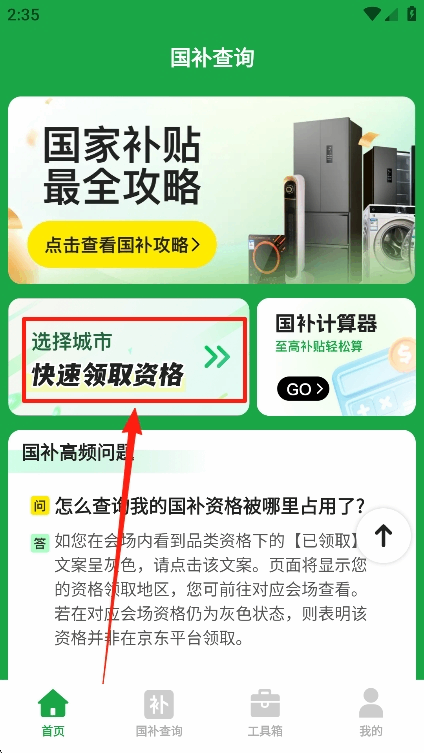 软件提供了国补查询的工具,这里可以对国(guo)家(jia)政策补贴来一键查询,便捷查询国补城市。