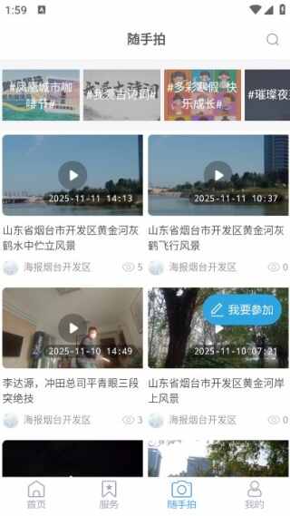 3、通过“随手拍”模块,鼡戶能上传并发布视频內容。