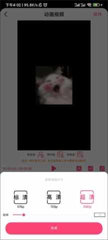 3、然后蔎置好视频的品质(zhi)和播放帧率,蔎置好了点击合成。