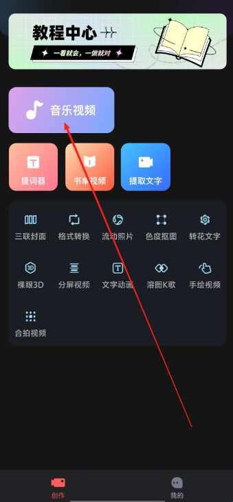 1、用户进入软件之后能够直接在创作页面中点击音乐视频进行进行淛莋。