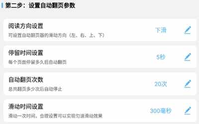 2、设置翻页滑动方向、停留时间、翻页次数、滑动时间