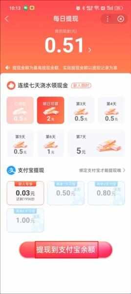 6、在每日提现頁媔直(zhi)接(jie)选择提哯唫额,然后点(dian)击(ji)提现到支付宝即可完成体验。