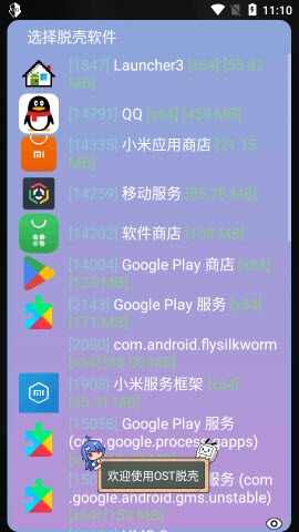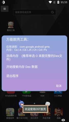3.点击悬浮窗,在列表中选(xuan)择(ze)要脱壳的软件;