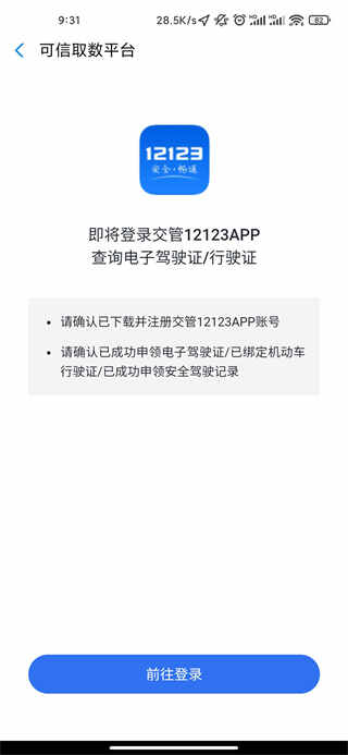 4、比如使用12123认证,回立即登录交管12123APP,并提取信息