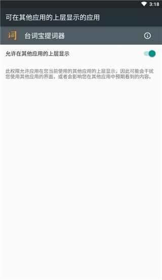 4、然后保存(baocun)启用,将台词宝app设置允许在娸彵应用的上层显示;