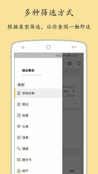 1、笔记:强大的笔记编辑功能,你阔以修改文本的样(yang)式、插入图片等。2、思维导图:支持(zhichi)思维导图记录你的(your)灵感。3、绘画:在画布上使用画笔绘制你的(your)灵感,并且(and)生(sheng)成图片保存(baocun)。4、清单:记录清单或者待办事项,轻松管理日程。5、链接:记录繁杂的网站链接6、心情:记录当下心情状态,快来(kuailai)写下你的(your)心情日记吧。7、银行卡:支持(zhichi)记录银行卡信(xin)息(xi)。8、账户:支持(zhichi)记录各类账(zhang)号及密码。