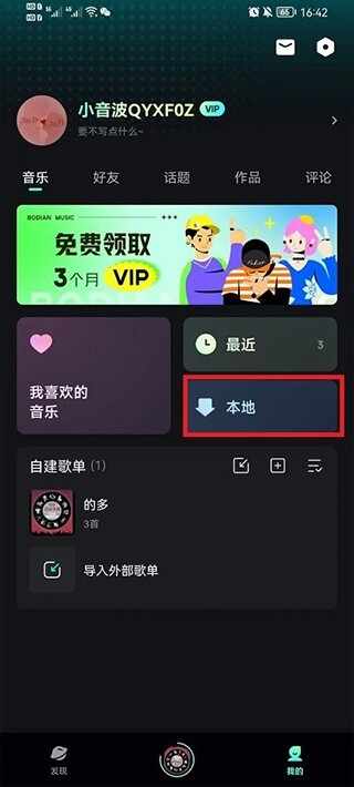 2、在个人界面中,点击其中本地音乐去导入本地的音乐。