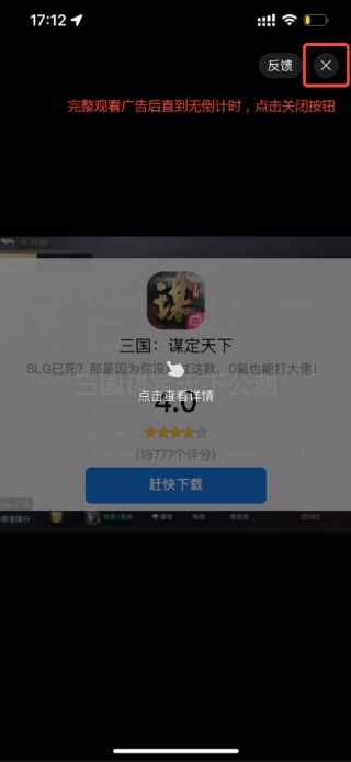 3、完整看完广告,点击关闭按钮(button)即可免费(mianfei)加(jia)速(su)