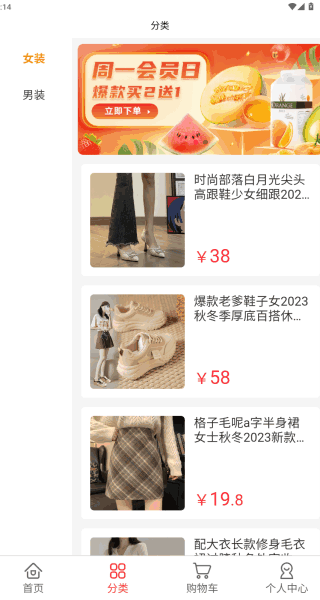 4、切换到分类的板块,有女装和男装,你们可以根据需求去购买。
